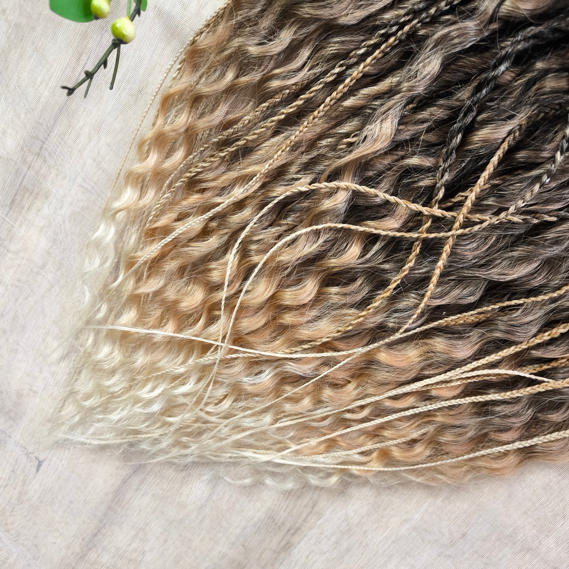 DE synthetic set of braids, Senegalese twists and dreaded curls ombre from brown to wheat blonde 22-24"