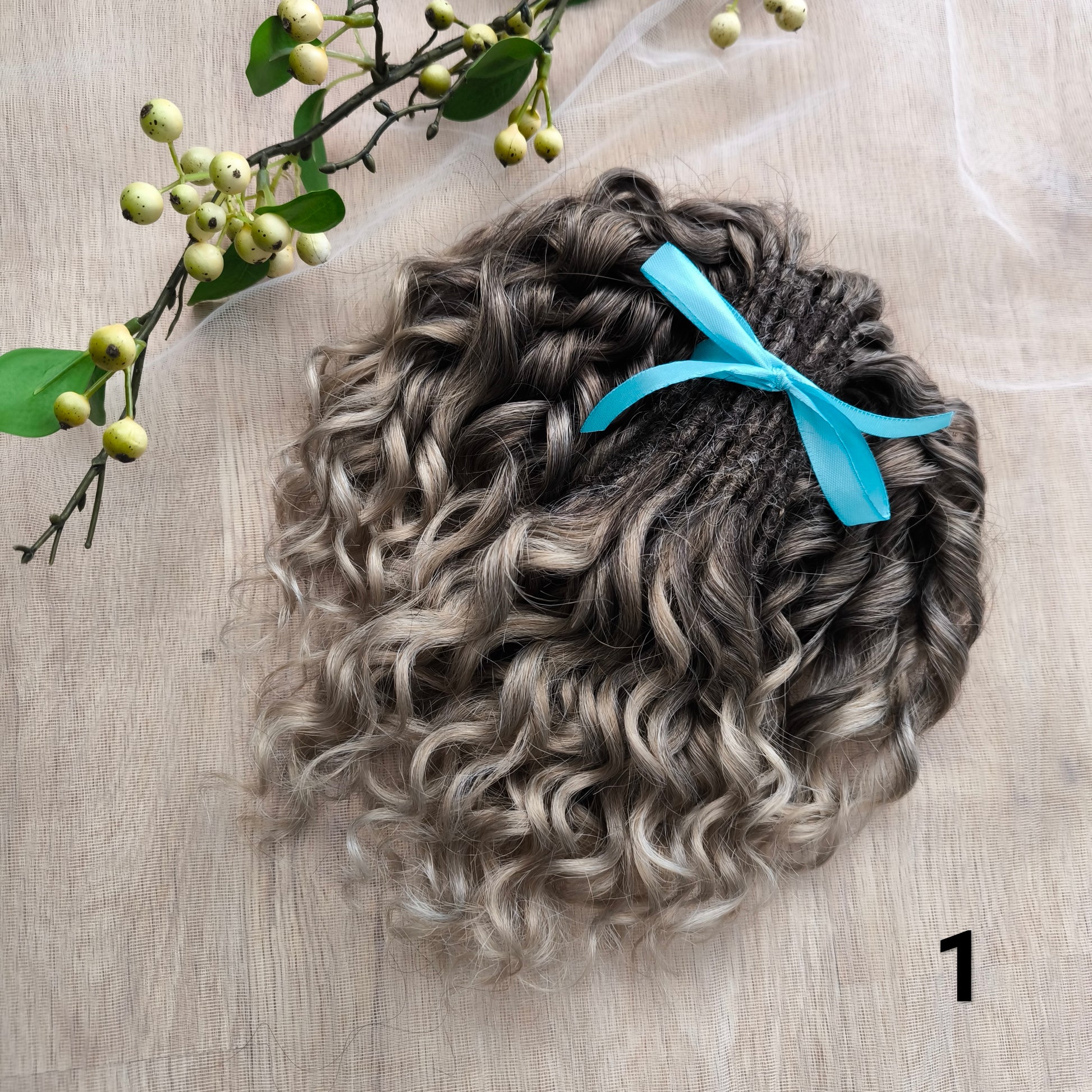 Natural-looking short Jessica regular dreaded curls are available in a few shades of brown (solid and ombre) and black colors. The length is 10 inches (25 cm), dreaded part ±3-4 inches. If you need a longer or shorter dreaded part, contact me before ordering