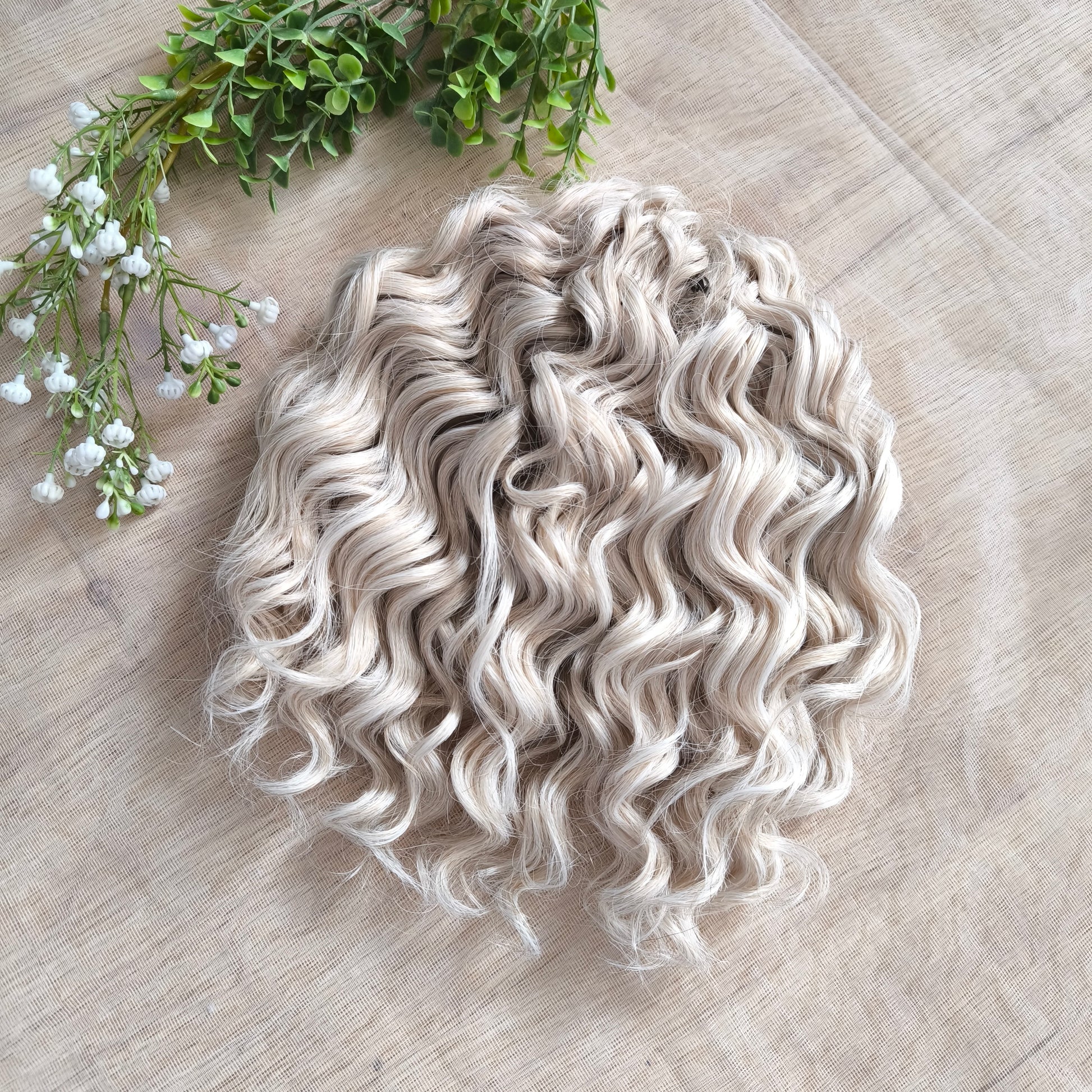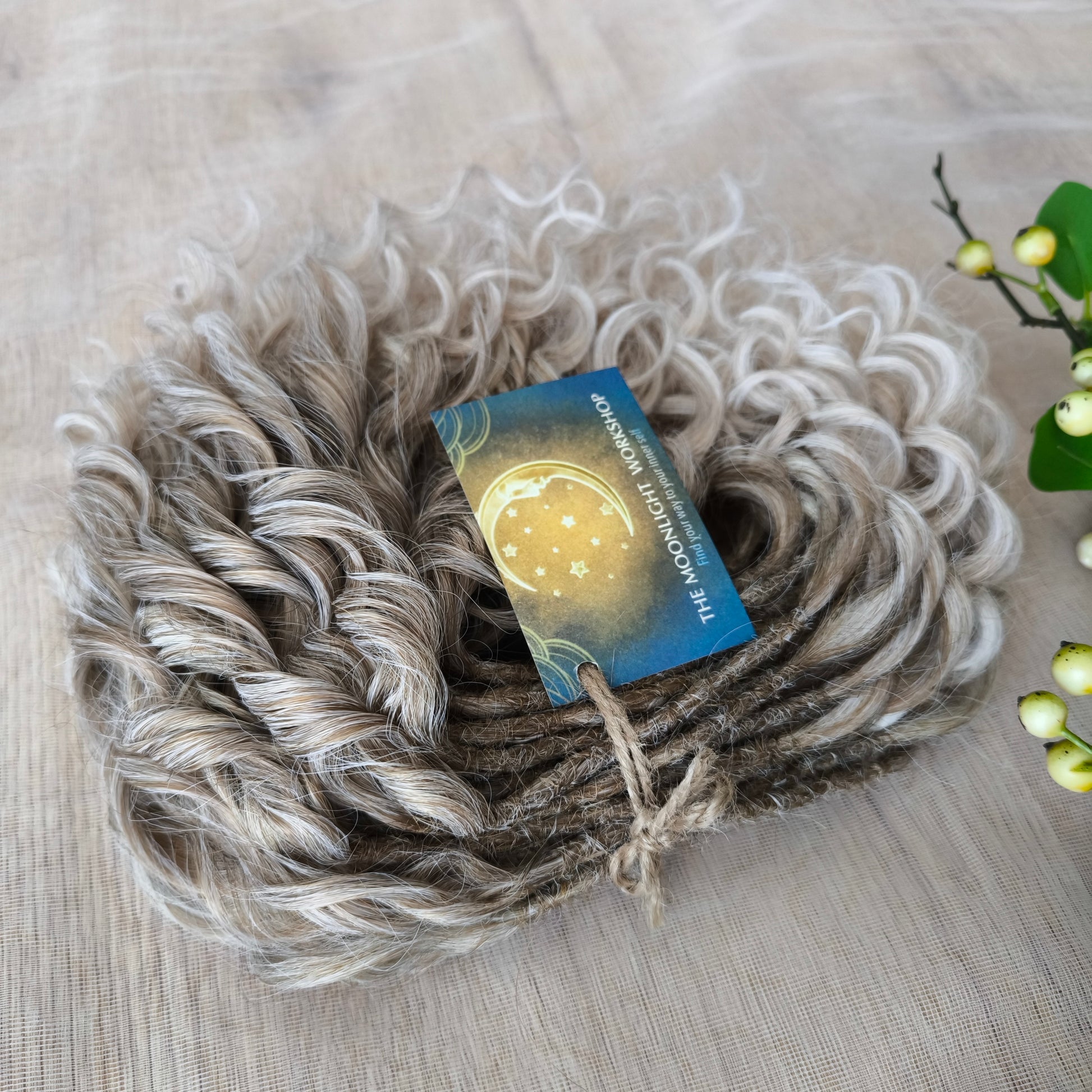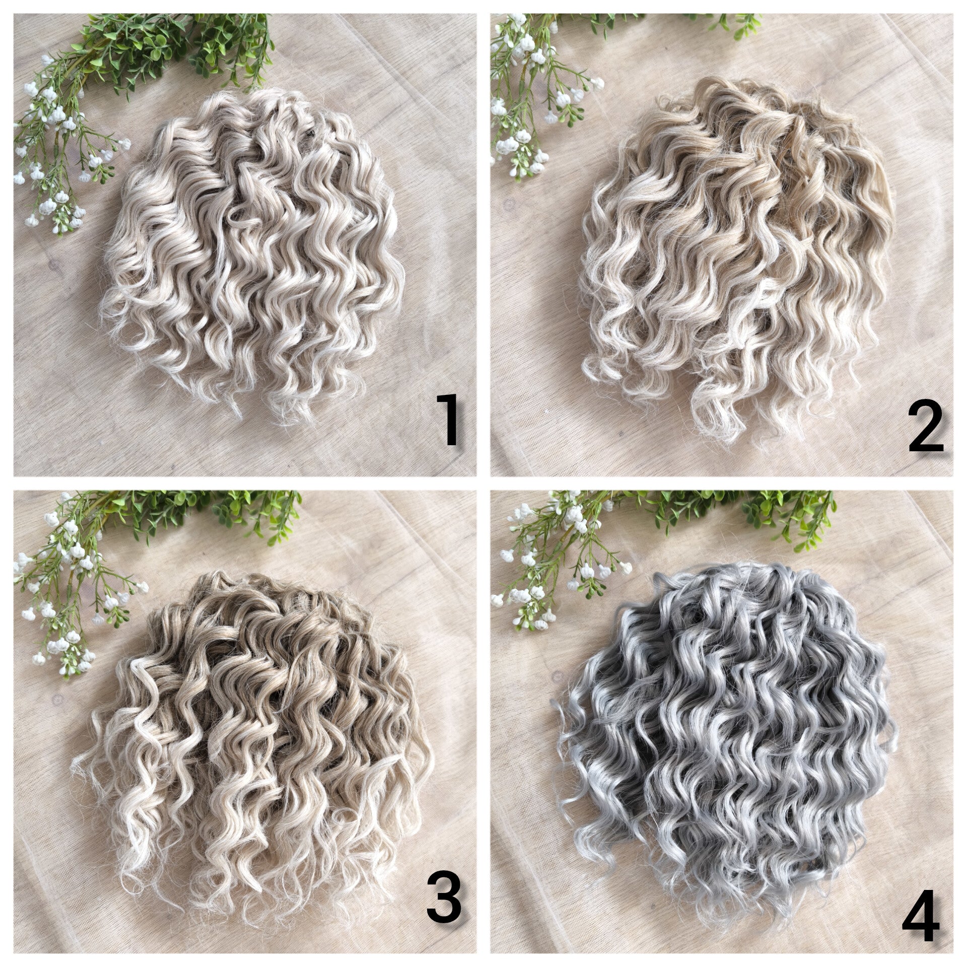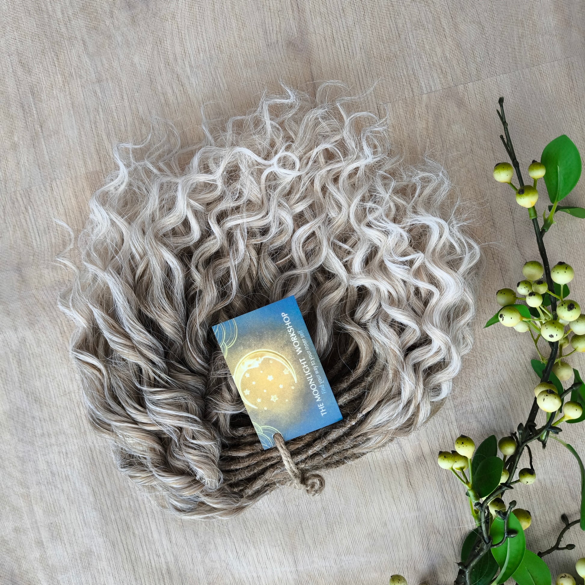 Natural-looking short Jessica regular dreaded curls are available in a few shades of platinum blonde (solid and ombre) and silver colors. The length is 10 inches (25 cm), dreaded part ±3-4 inches. If you need a longer or shorter dreaded part, contact me before ordering