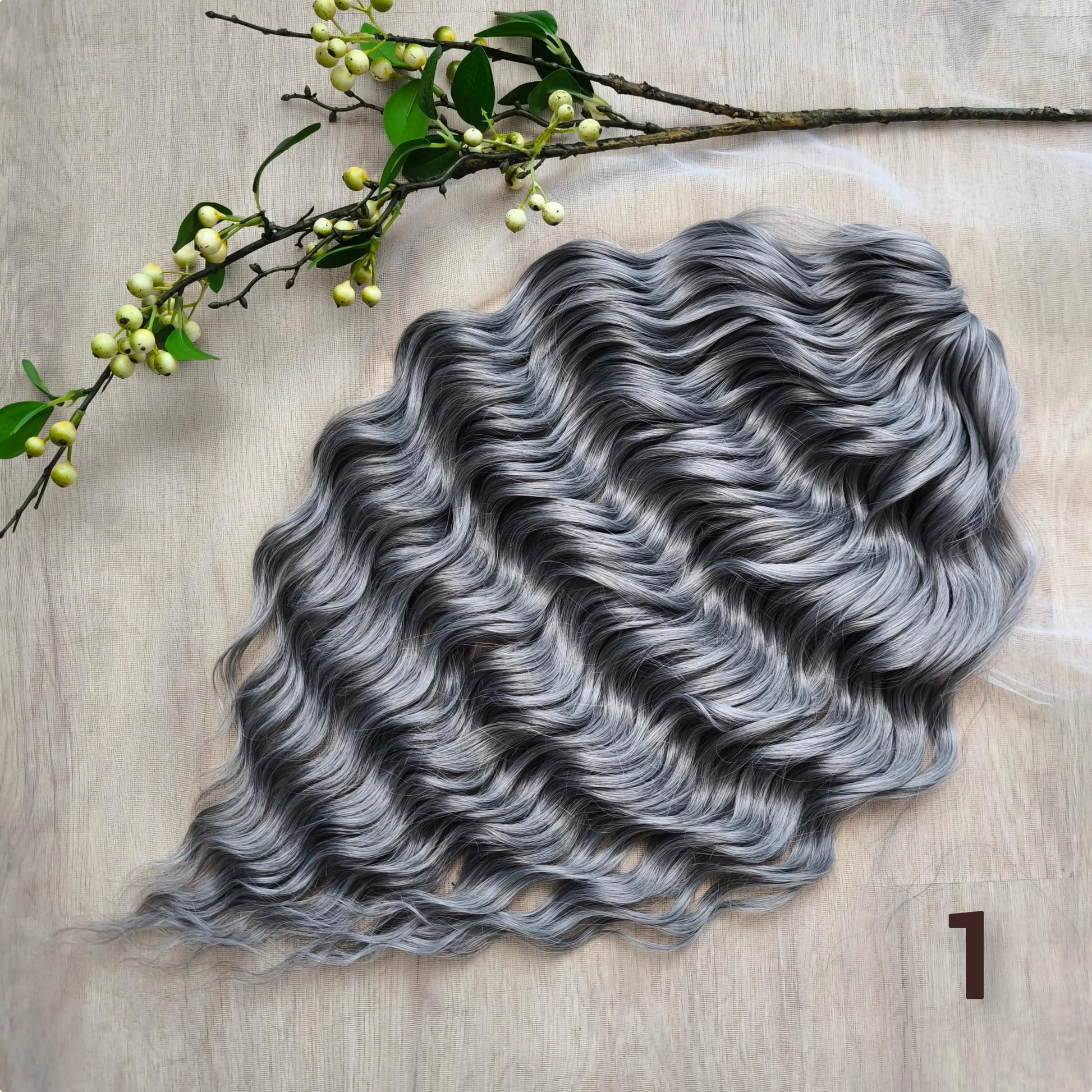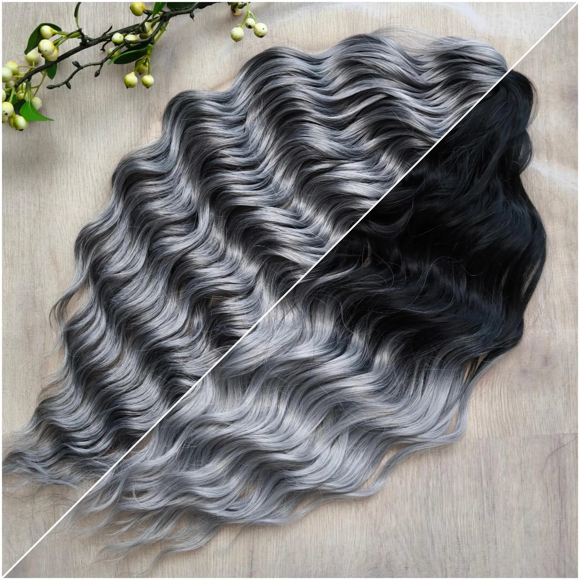 Silver/ombre gray BRUSHABLE synthetic DE dreaded curls (regular, braided middle or push-up)