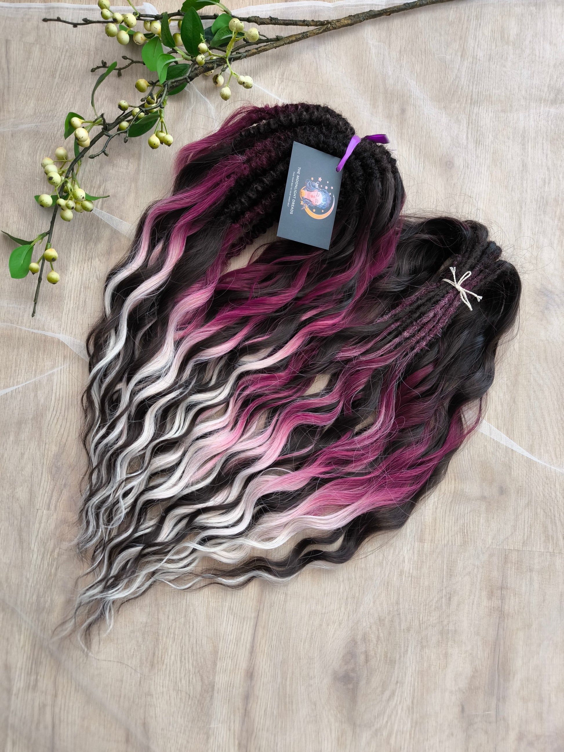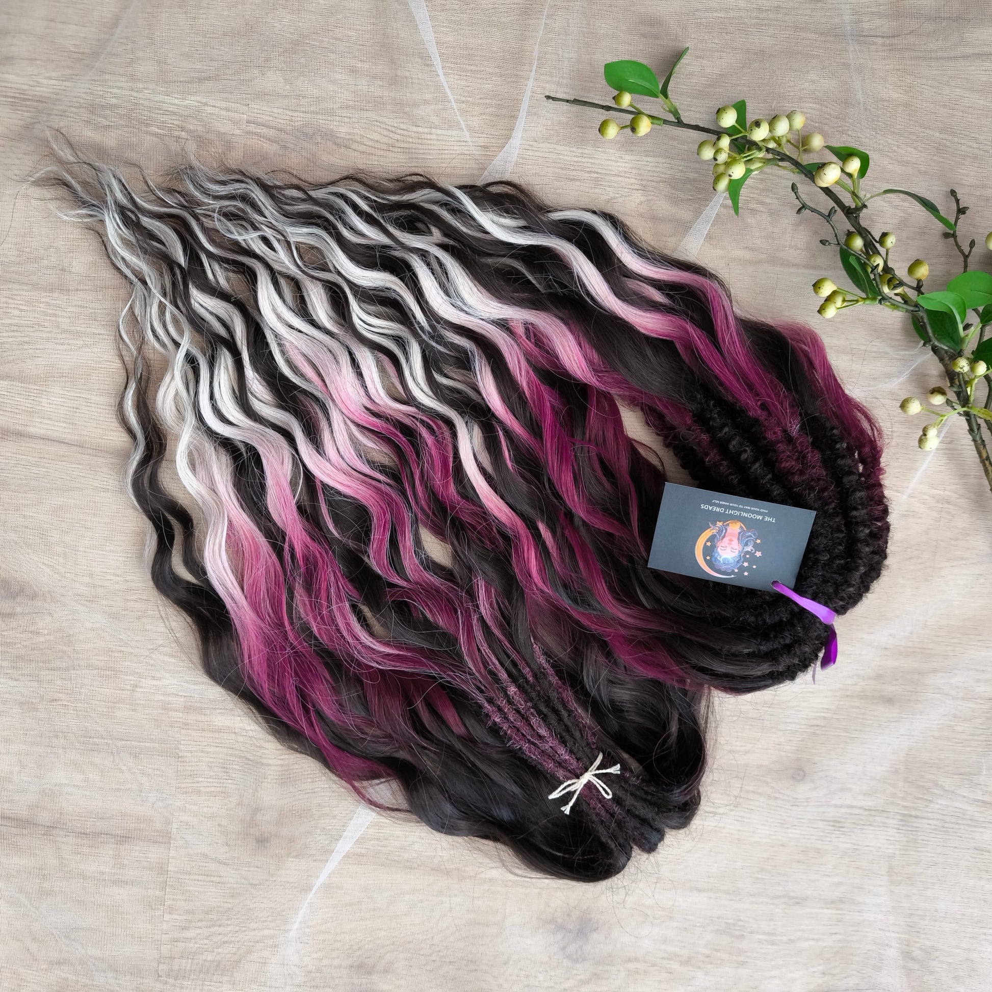 Soft, lightweight, and reusable synthetic brushable double ended wavy dreadlocks.